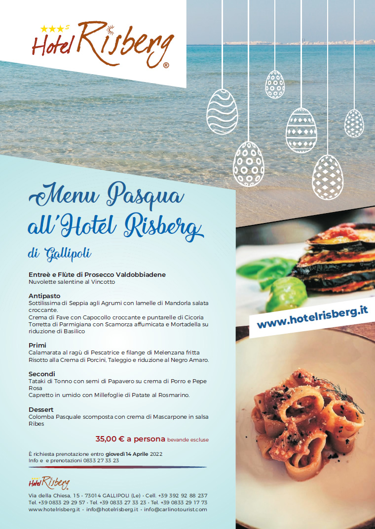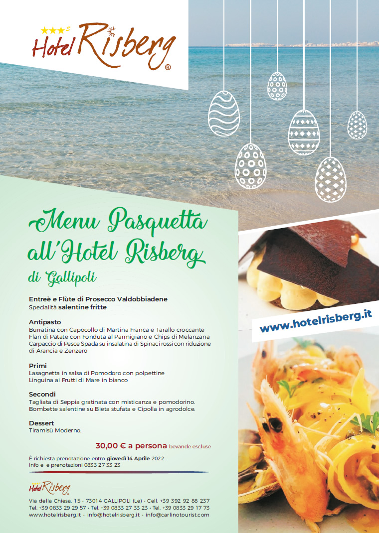 Menu Pasqua 2022 all'Hotel Risberg di Gallipoli